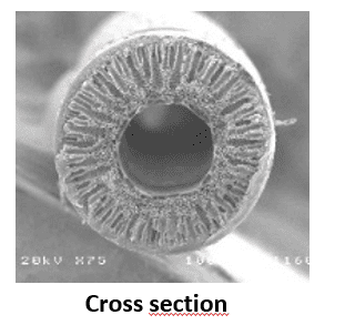a) Membranas na geometria cilíndrica, do tipo fibras ocas (Figura 1);