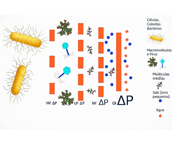 Os PSM destinados a tratamento de correntes líquidas compreendem Microfiltração (MF), Ultrafiltração (UF), Nanofiltração (NF) e Osmose Inversa (OI).